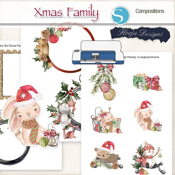Une collection de scrapbooking numérique sur le thème de Noël, avec des illustrations douces et enfantines, composées de petits lapins / koala / bonhome de neige rigolo et père noël tout mignon et joyeux .