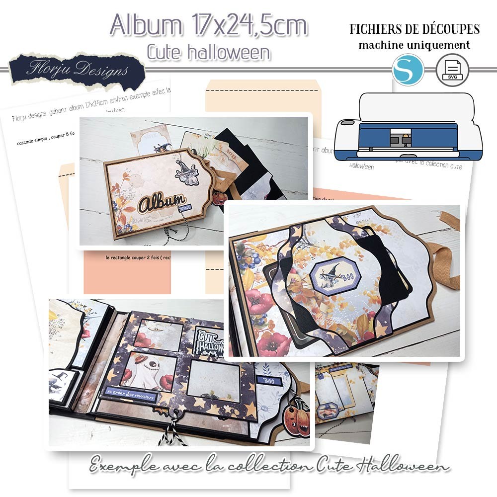 Ces fichiers numériques de l'album Cute Halloween vous permettront de créer un album . Il peut inclure jusqu'à 53 photos ( tous les emplacements photos ne sont pas spécifiés par un cardstock ) et il y a des espaces pour la journalisation grâce aux pochettes dans le projet fini.