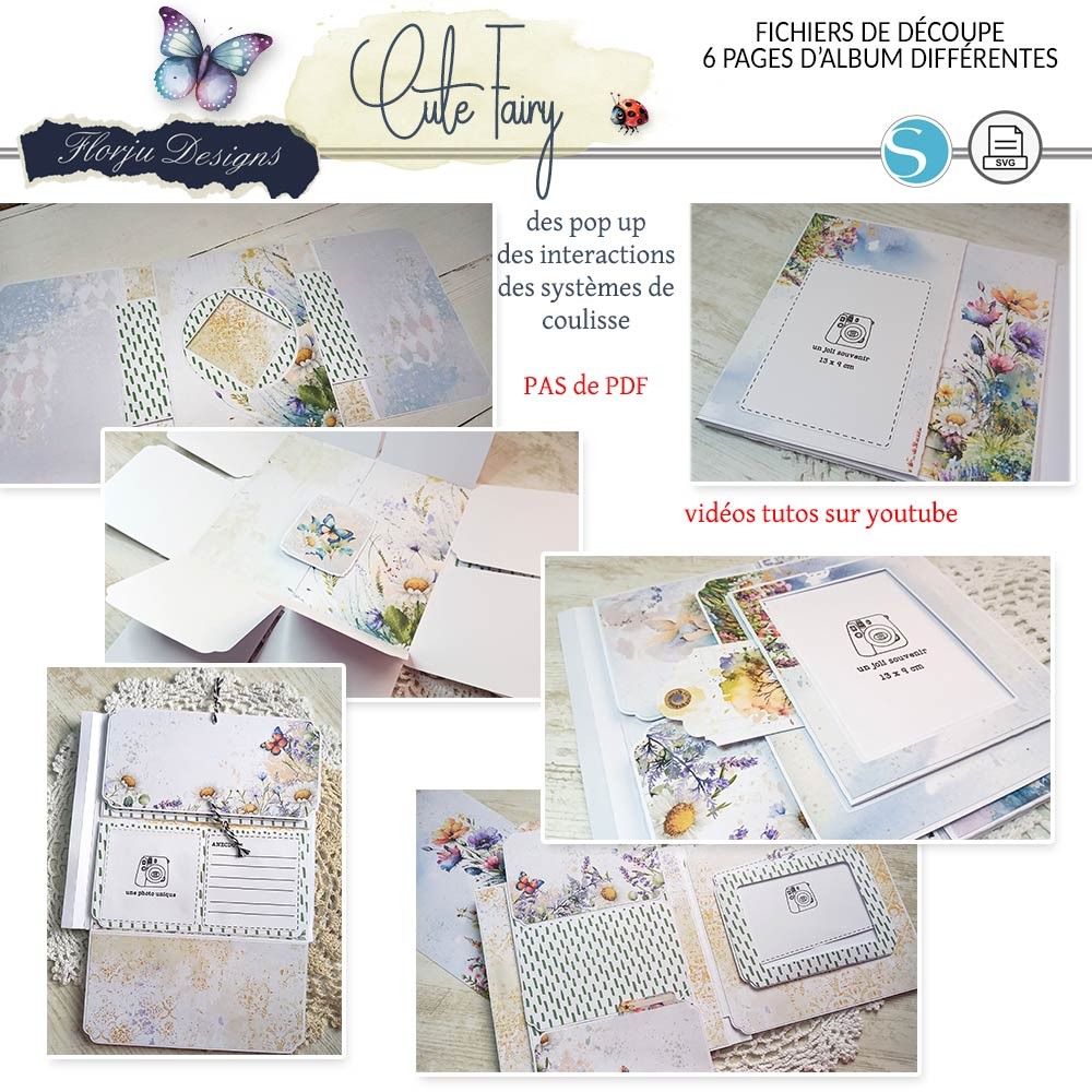 Ci dessous, vous avez les aperçus pour chaque page qui ont les fichiers de découpes, pour plus de détails n'hésitez pas à consulter la chaine youtube, playlist Album Cute Fairy