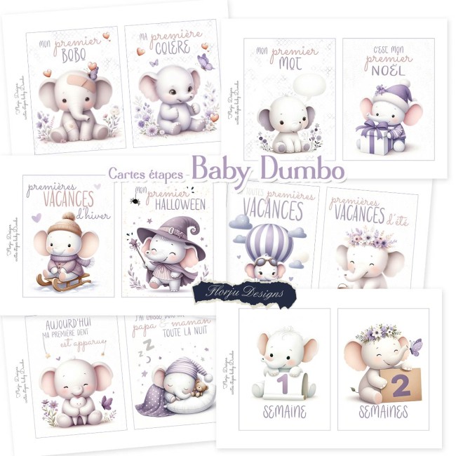 Voici un ensemble de cartes étapes ( 2 tailles ) à imprimer qui capturent les moments les plus mémorables et drôles du développement d'un bébé, de sa naissance à ses 1 an, voire plus. Chaque carte est ornée de petits éléphants adorables et joyeux pour ajouter une touche de douceur et de charme. Ils vont accompagner les grandes étapes de la vie de bébé au fur et à mesure qu'il grandit .