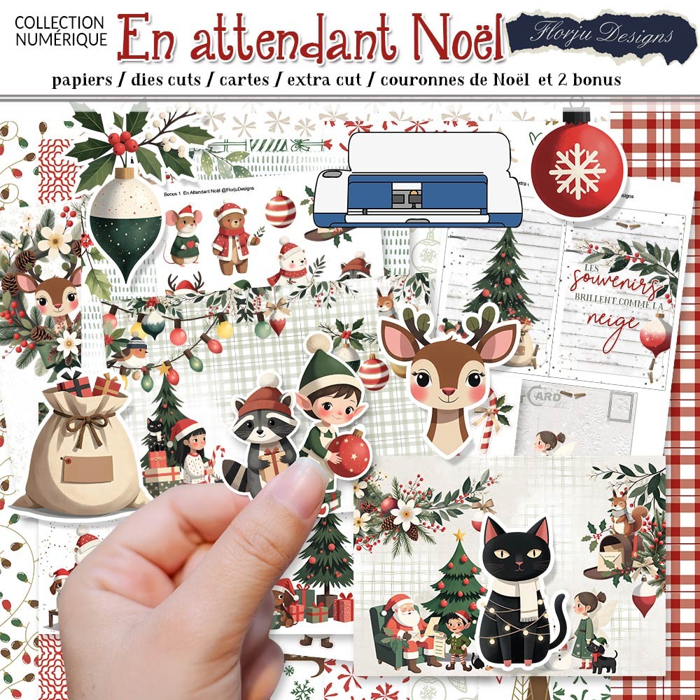Plongez dans l’univers féerique de Noël avec la collection numérique "En attendant Noël". Cette série se décline dans des tons traditionnels de vert et de rouge, évoquant la magie des célébrations hivernales. Chaque élément de la collection a été soigneusement conçu pour apporter à la fois une touche enfantine et un raffinement décoratif, permettant ainsi de s’adapter à différents styles et ambiances . Un style enfantin apporté par des animaux rigolos jouant avec une guirlande lumineuse, portant des bonnets de Noël .