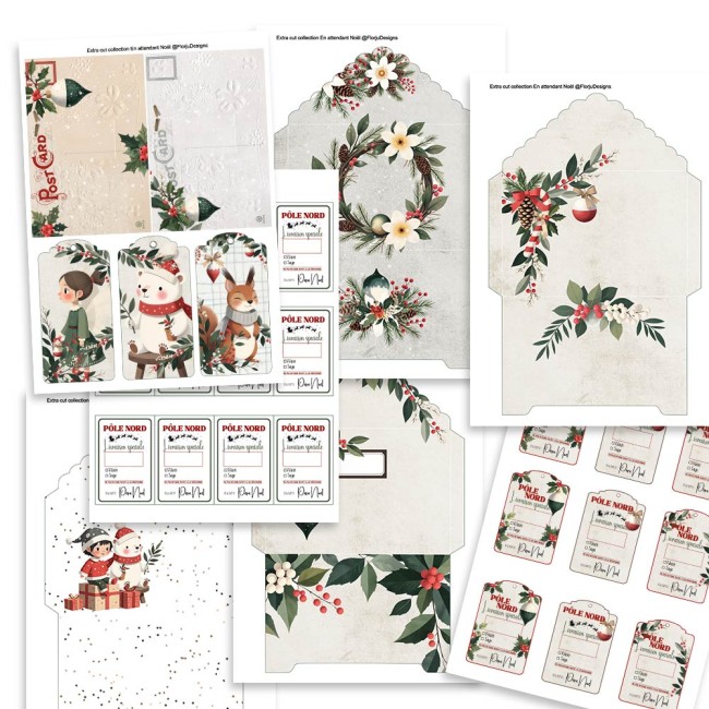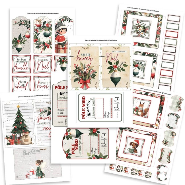 Pour compléter cette collection, en plus des papiers, il y a une variété de dies cuts / extra cut et cartes parfaitement assortis. Le format print & cut de silhouette, en plus du PDF permettent des découpes précises ( sauf pour les cartes, pas de print & cut silhouette ).