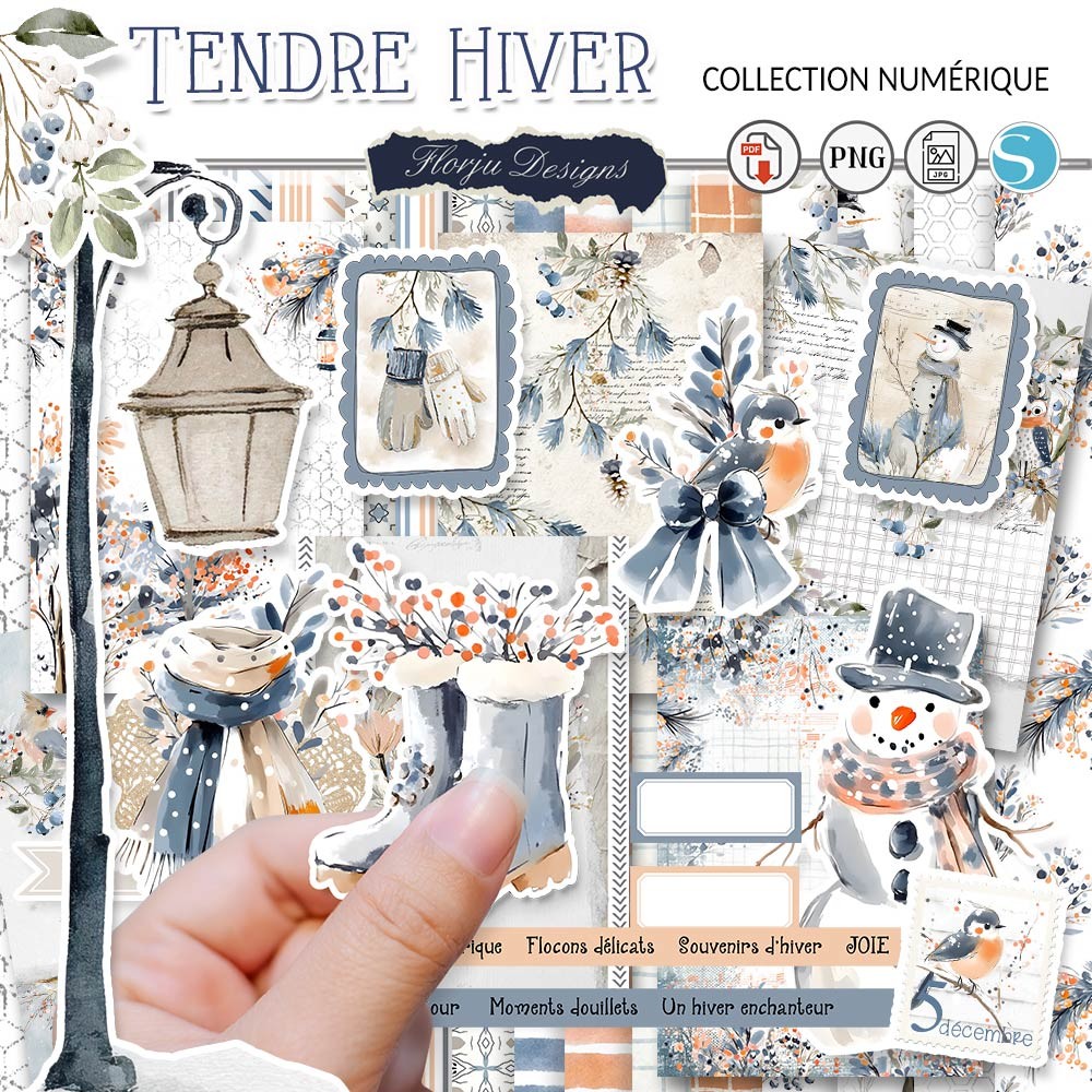 J'ai créer cette collection numérique de scrapbooking sur le thème de l’hiver en mettant en avant une ambiance chaleureuse et cocooning, parfaite pour capturer les souvenirs des fêtes. Dominée par des teintes bleue et beige rappelant l'ambiance de l'hiver, sans oublier la touche orangée pour apporter du relief et du dynamisme à cette collection qui apportera une touche de magie à tous vos projets créatifs .