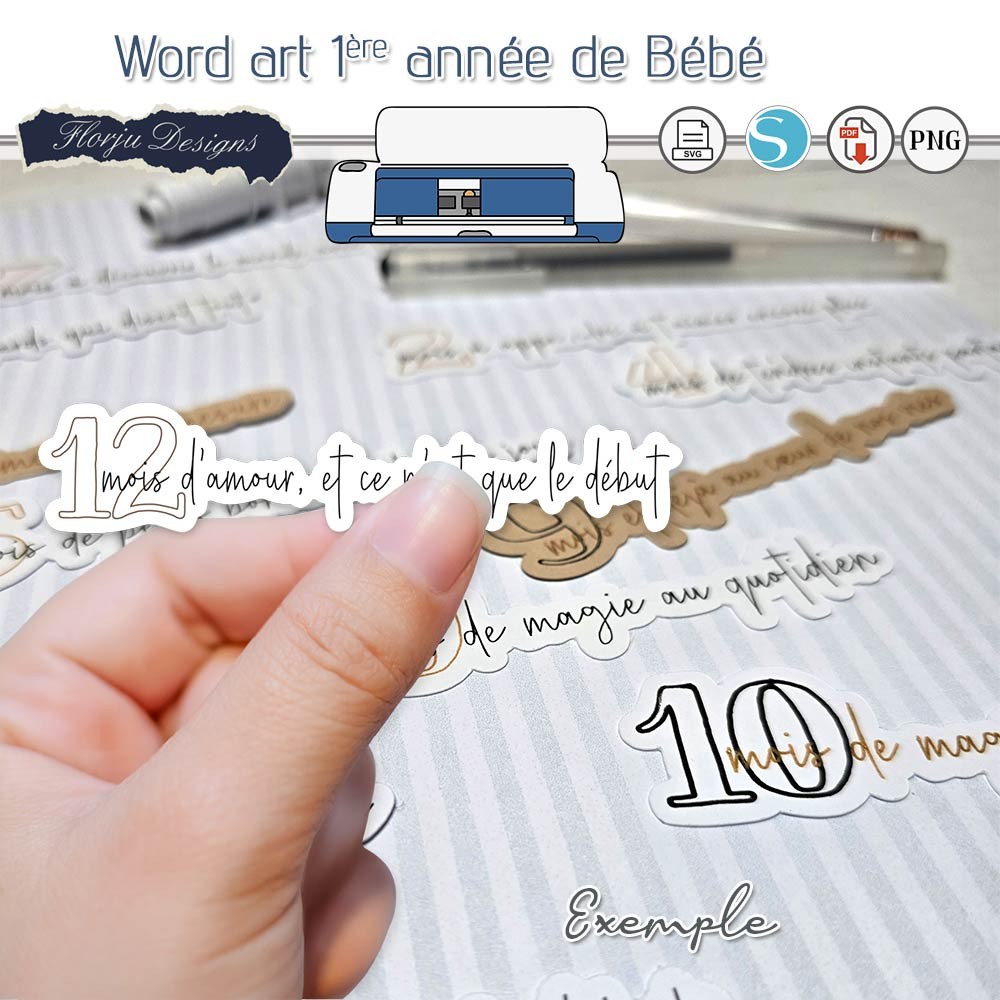 - Fichier PNG ( fond transparent ) de chaque mot / texte, vous pourrez choisir les mots et créer votre page à imprimer dans canva par exemple ou autre logiciel . Vous pourrez les importer dans le DS de cricut et créer un print then cut.