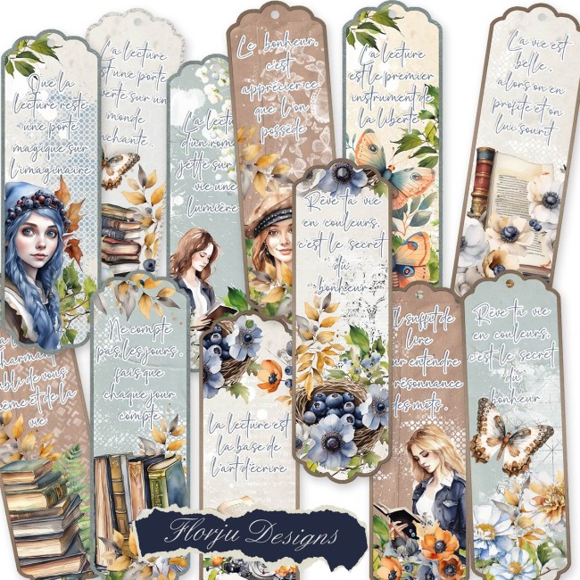 - PNG : des marques pages et des papiers décoratifs de la boite , vous pourrez les importer dans le logiciel de cricut par exemple et créer un print then cut , attention , il sont à redimmensionner aux mesures données pour chaque image.